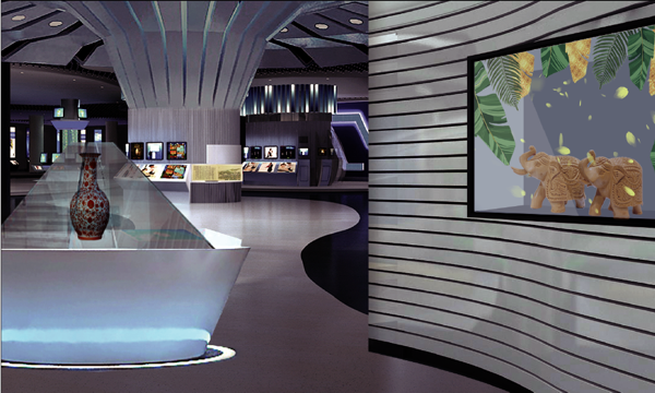 Circular cinerama fusionpProjection/u-shaped video wall (Immersive) BOE igallery video wall/historical evolution wall (corridor) Projection & rotating display interactive wall (experiential) 180 °/270 ° holographic projection on large curtain display (stage)